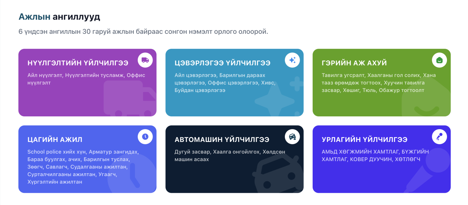 • Олон төрлийн ажлын санал хүлээн авна;
