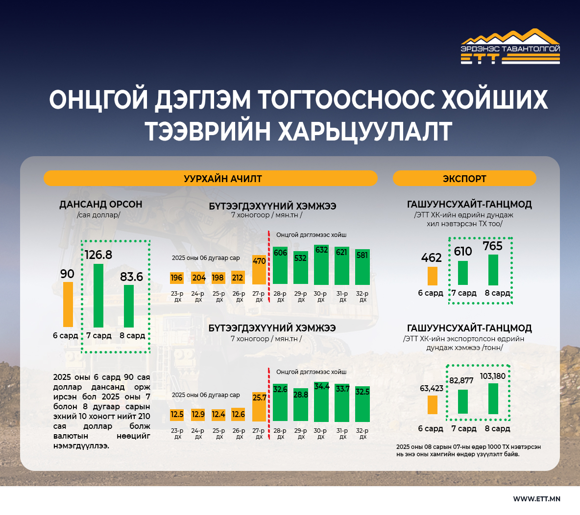 “ЭРДЭНЭС ТАВАНТОЛГОЙ” ХК ЭНЭ ДОЛОО ХОНОГТ 11 УДААГИЙН АРИЛЖААГААР 819.2 МЯНГАН ТОНН НҮҮРС БОРЛУУЛЛАА