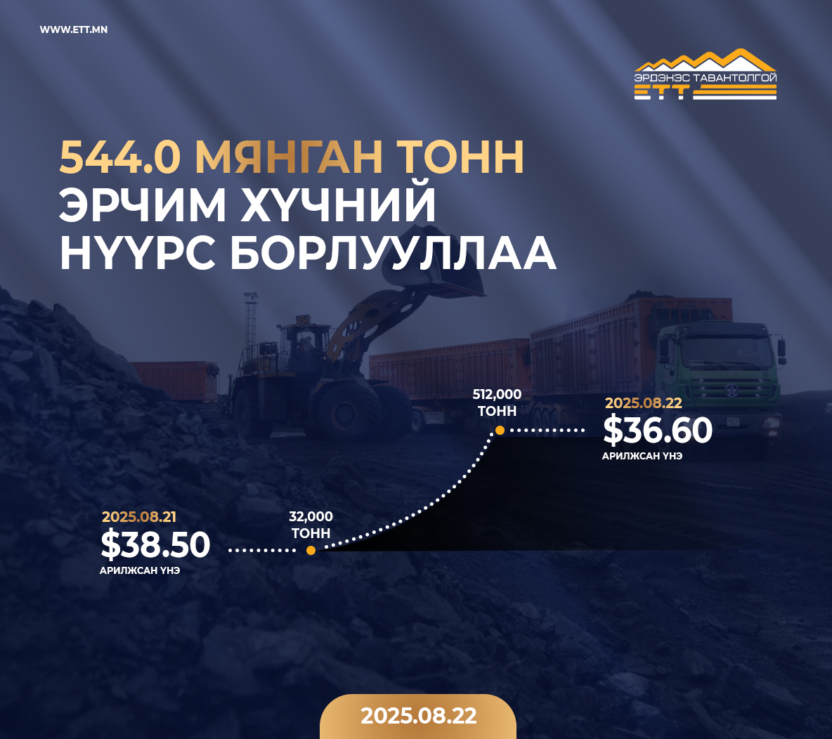 “ЭРДЭНЭС ТАВАНТОЛГОЙ” ХК 544.0 МЯНГАН ТОНН ЭРЧИМ ХҮЧНИЙ НҮҮРС АРИЛЖЛАА